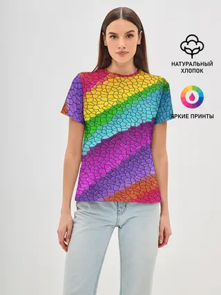 Женская базовая футболка / Яркая мозаика радуга диагональ