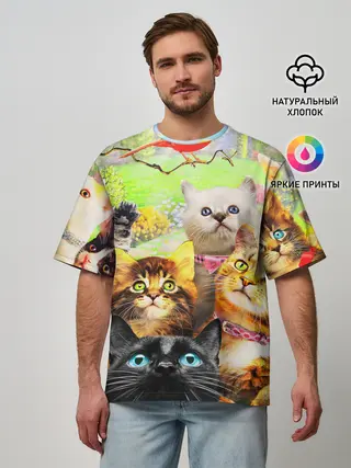 Мужская футболка оверсайз / КОТЫ