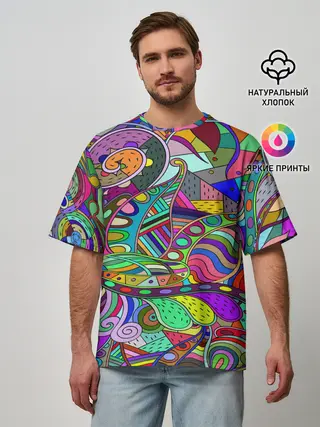 Мужская футболка оверсайз / Дудлы узор разноцветный хиппи