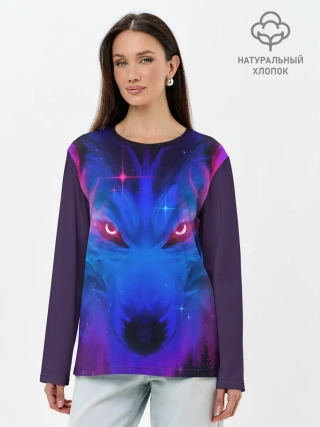 Лонгслив женский. Хлопок / КОСМИЧЕСКИЙ ВОЛК