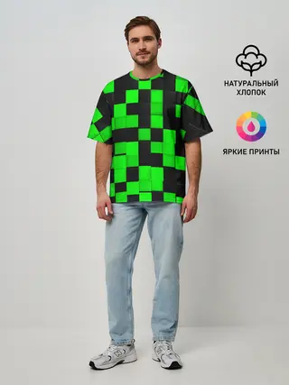Мужская футболка оверсайз / ЗЕЛЕНЫЕ КУБИКИ