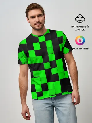 Мужская базовая футболка / ЗЕЛЕНЫЕ КУБИКИ