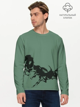 Мужской лонгслив базовый / черные кони