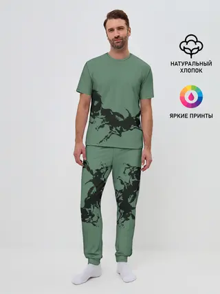Мужская пижама с брюками / черные кони