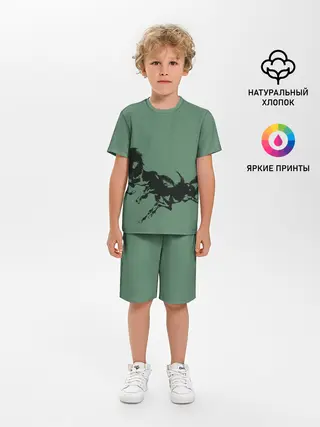 Детская пижама с шортами / черные кони