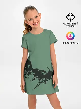 Детское платье / черные кони