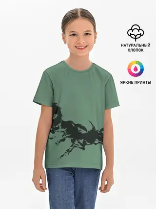Детская базовая футболка / черные кони