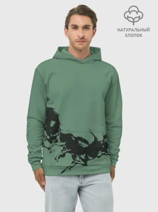 Худи мужской база хлопок / черные кони
