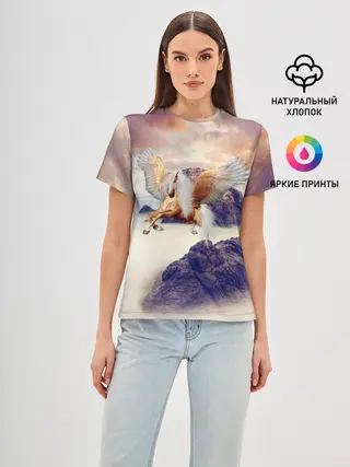 Лонгслив женский. Хлопок / Sea Sunset Horse
