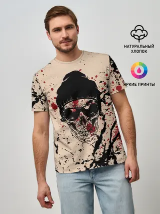 Мужская базовая футболка / Череп Хипстер Брызги Краски