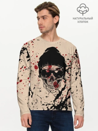 Мужской лонгслив базовый / Череп Хипстер Брызги Краски