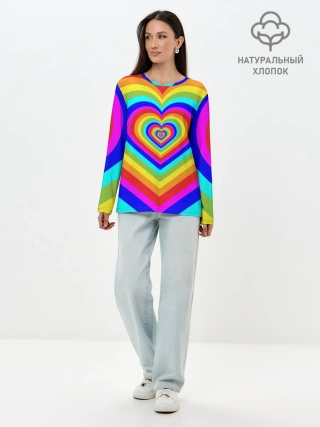 Лонгслив женский. Хлопок / Цветные сердца | Colored hearts