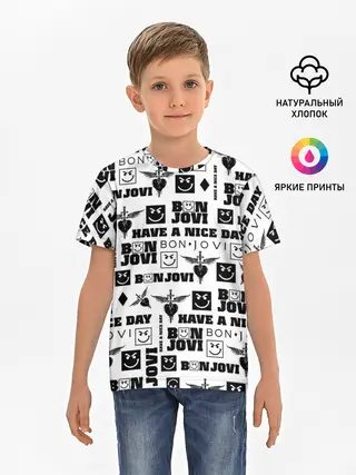 Детская базовая футболка / BON JOVI ЛОГОБОМБИНГ | БОН ДЖОВИ ПАТТЕРН