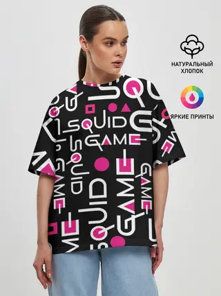Женская футболка оверсайз / SQUID GAME ЛОГО PINK