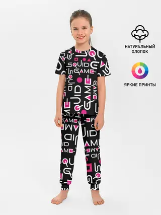 Детская пижама с брюками / SQUID GAME ЛОГО PINK