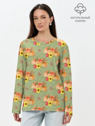 Лонгслив женский. Хлопок / Овощи: Тыквы паттерн