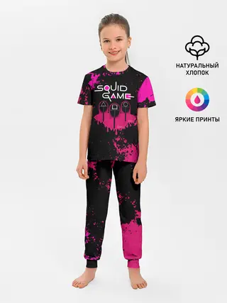 Детская пижама с брюками / Squid Game брызги красок стража.