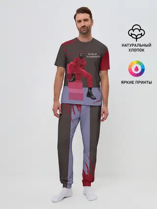 Мужская пижама с брюками / КВАДРАТ НА ОТДЫХЕ | ИГРА В КАЛЬМАРА