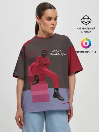Женская футболка оверсайз / КВАДРАТ НА ОТДЫХЕ | ИГРА В КАЛЬМАРА