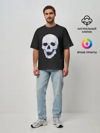 Мужская футболка оверсайз / Неоновый светящийся череп
