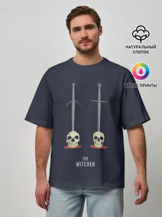Мужская футболка оверсайз / Стальной и серебряный меч