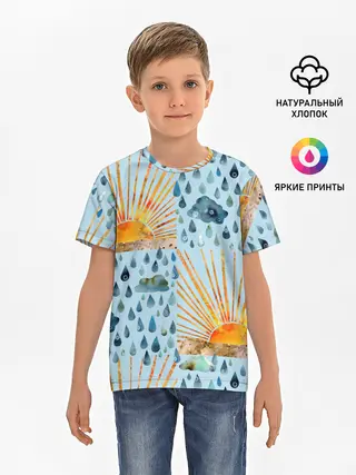 Детская базовая футболка / Осенний паттерн: Дождь и солнце
