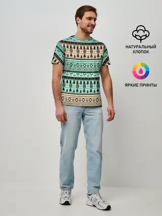 Мужская футболка оверсайз / Новогодний зимний орнамент