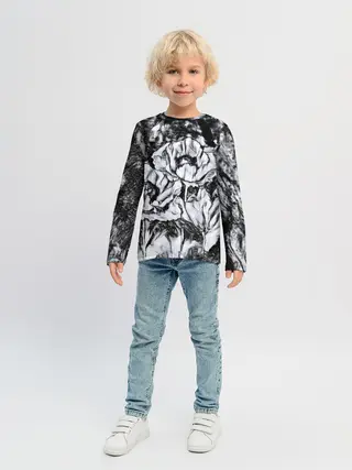 Мужской лонгслив базовый / Черно-белый узор. Маки.