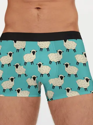 Мужские трусы боксеры / Овечки паттерн на бирюзовом
