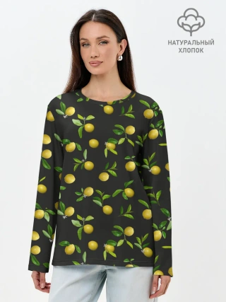 Женская пижама с шортами / Летний узор лимон ветки листья