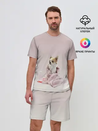 Женская пижама с шортами / Чихуахуа из бумаги вылазит
