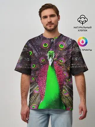 Мужская футболка оверсайз / Оперение Павлина