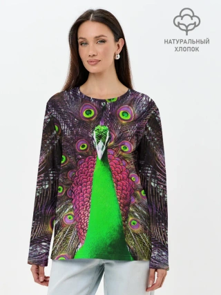 Лонгслив женский. Хлопок / Оперение Павлина