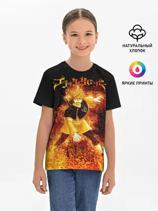 Детская базовая футболка / Чёрный клевер Аста в огне