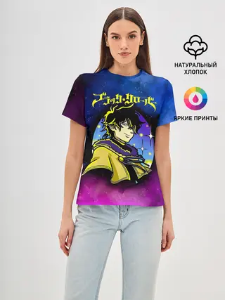 Женская футболка оверсайз / Чёрный клевер космический Юно