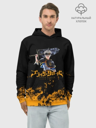 Худи мужской база хлопок / Аста с мечом Чёрный клевер
