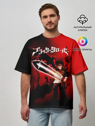Мужская футболка оверсайз / Чёрный Аста красный туман