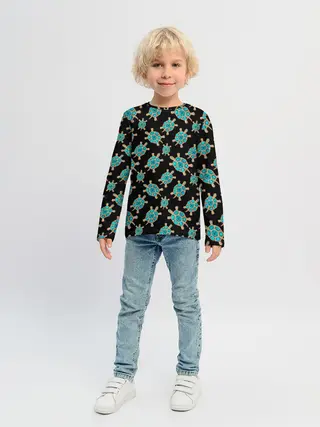Мужской лонгслив базовый / Бирюзовые черепашки брошка