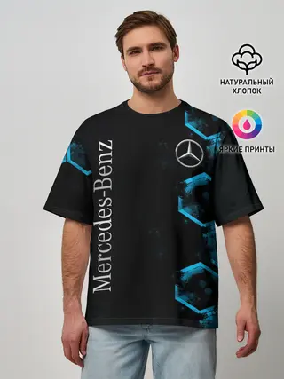 Мужская футболка оверсайз / Mercedes | Мерседес | Неон