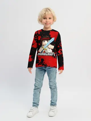 Мужской лонгслив базовый / Стив с мечом Minecraft