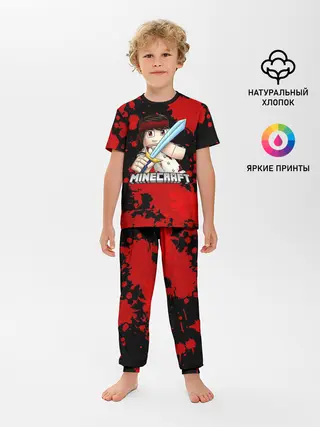 Мужская пижама с брюками / Стив с мечом Minecraft