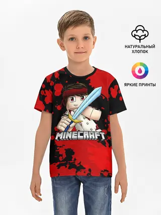 Мужская футболка оверсайз / Стив с мечом Minecraft