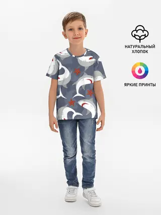 Женская пижама с шортами / Кровожадные акулы паттерн