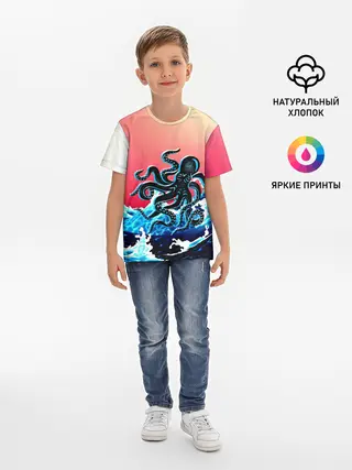 Мужская футболка оверсайз / Кракен в Море | Градиент