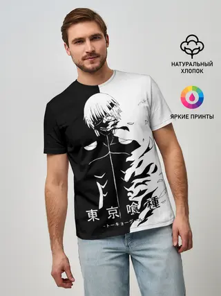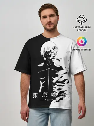 Мужская футболка оверсайз / Токийский гуль черно белый Кен