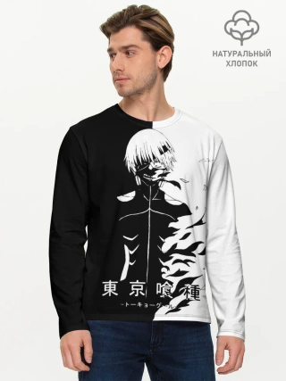 Мужской лонгслив базовый / Токийский гуль черно белый Кен