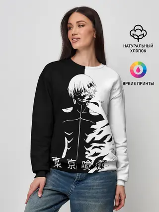 Женский свитшот / Токийский гуль черно белый Кен