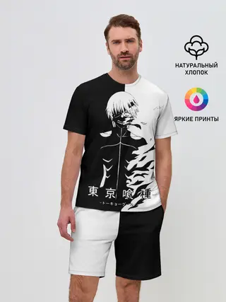 Мужской костюм с шортами / Токийский гуль черно белый Кен