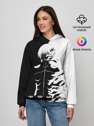 Женское худи / Токийский гуль черно белый Кен