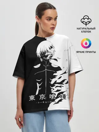 Женская футболка оверсайз / Токийский гуль черно белый Кен